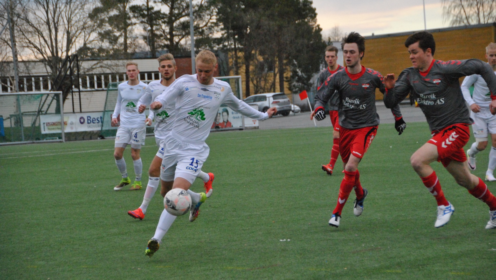 Kampen var bare syv minutter gammel når hjemmelagets Robert Vikestad satte inn 1-0, etter godt forarbeid av Thomas Rønning. Orklas Erik Bjørkli Helgetun (bildet nedenfor) kom nok en gang på scoringslista når han fra spiss vinkel utlignet til 1-1 etter 29 minutter. Scoringen kom etter godt forarbeid av Steinar Gjersvoll.
